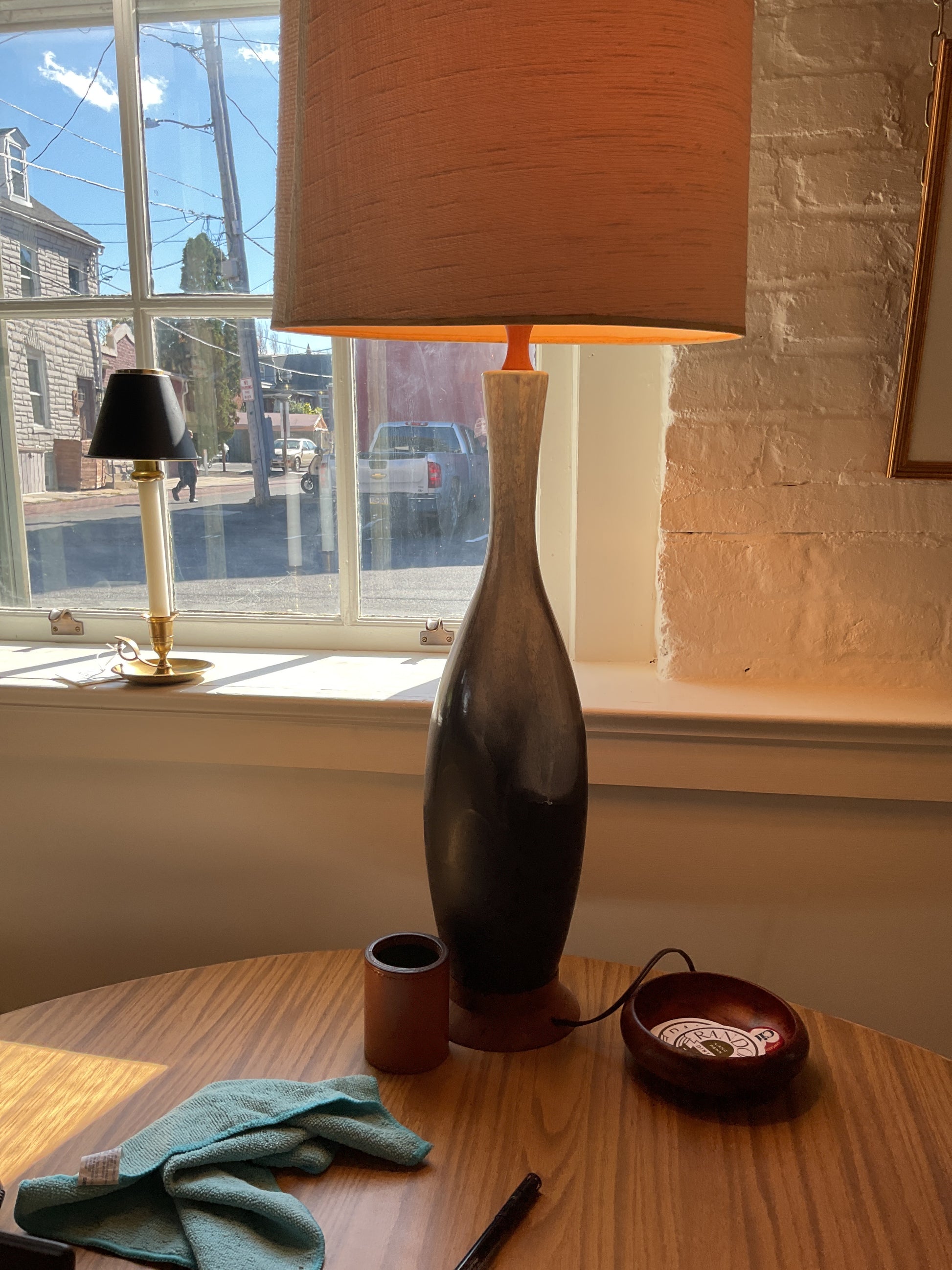 Vtg Drip Glazed Ceramic Lamp w/ Shade